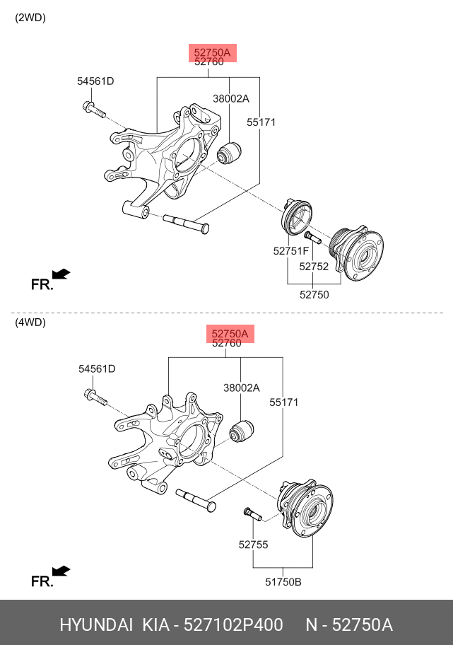 527102P400 HYUNDAI KIA Кулак поворотный KIA Sorento (12-) (4WD) левый задний OE