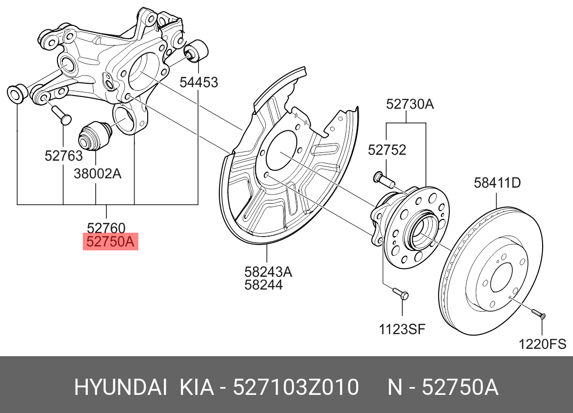527103Z010 HYUNDAI KIA Цапфа HYUNDAI i40 (11-) ступицы колеса заднего левого OE