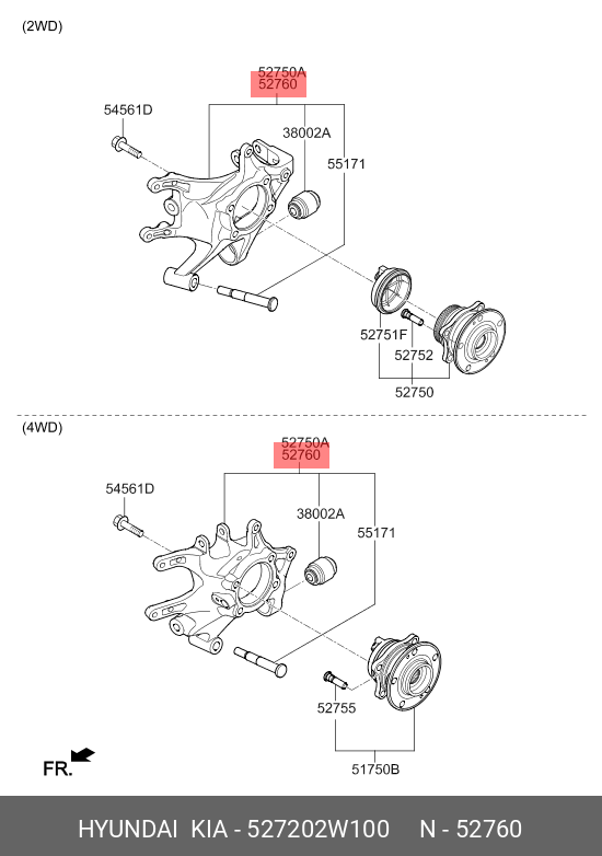 52720 2W100 HYUNDAI KIA Цапфа HYUNDAI Santa Fe (12-) (4WD) ступицы колеса заднего правого OE