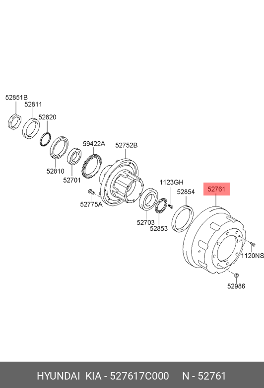 527617C000 HYUNDAI KIA Барабан тормозной HYUNDAI HD170,260,270,370,450,500 задний (1шт.) OE