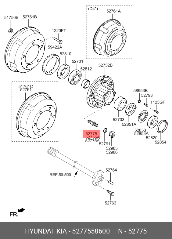 5277558600 HYUNDAI KIA Шпилька колеса HYUNDAI HD65,78 (15-) дв.D4GA заднего OE