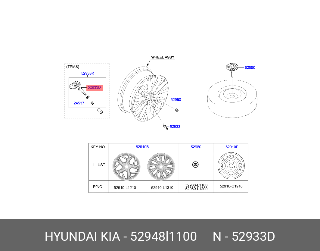 52948L1100 HYUNDAI KIA Вентиль HYUNDAI Sonata (19-) датчика давления в шине OE
