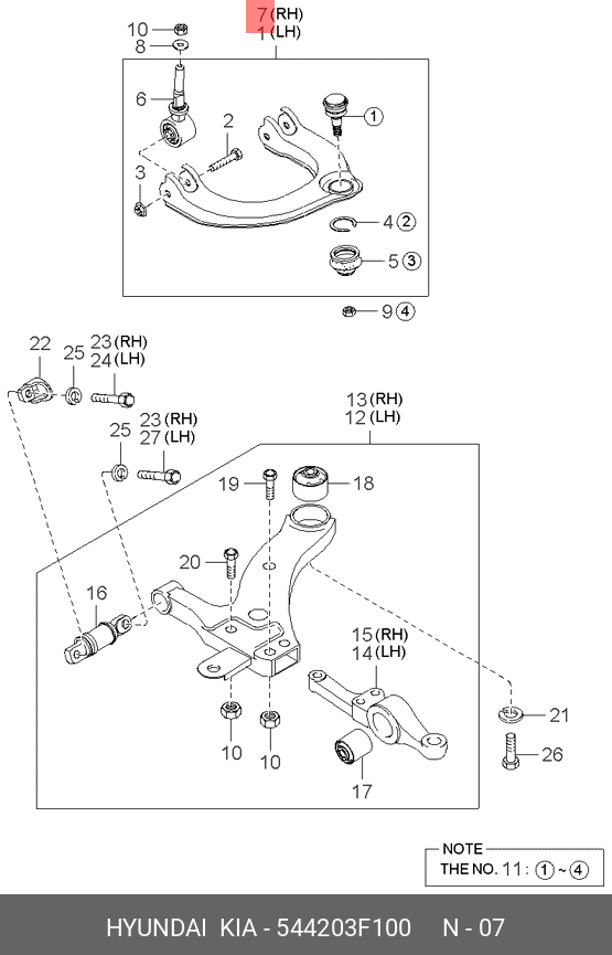 54420-3F100 HYUNDAI KIA Рычаг подвески KIA Opirus передней верхний правый OE
