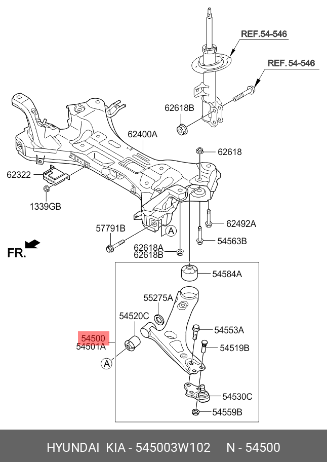 54500-3W102 HYUNDAI KIA Рычаг подвески HYUNDAI ix35 (10-) KIA Sportage (10-) передней нижний левый OE