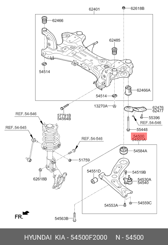54500F2000 HYUNDAI KIA Рычаг подвески HYUNDAI Elantra (15-) передний нижний левый OE