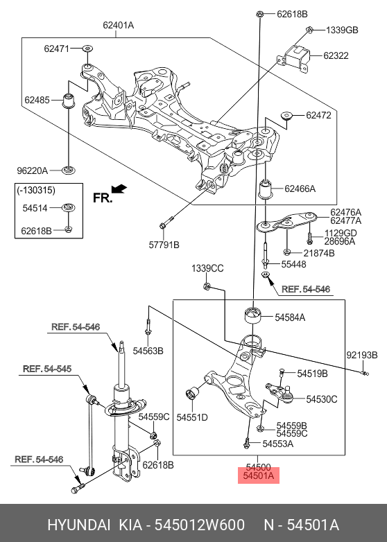 54501-2W600 HYUNDAI KIA Рычаг подвески HYUNDAI Santa Fe (14-) передний нижний правый OE