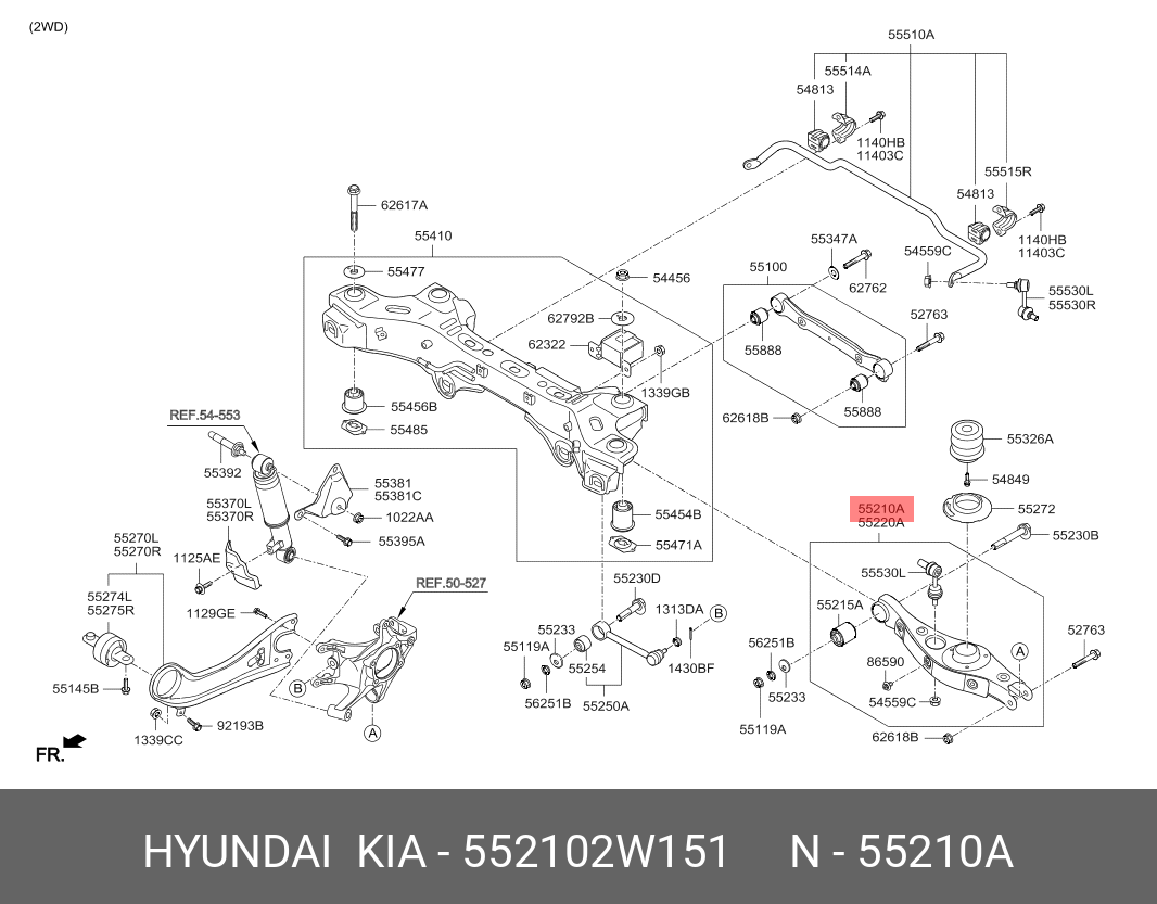 552102W151 HYUNDAI KIA Рычаг подвески HYUNDAI Santa Fe (12-)(4WD) задней нижний левый OE