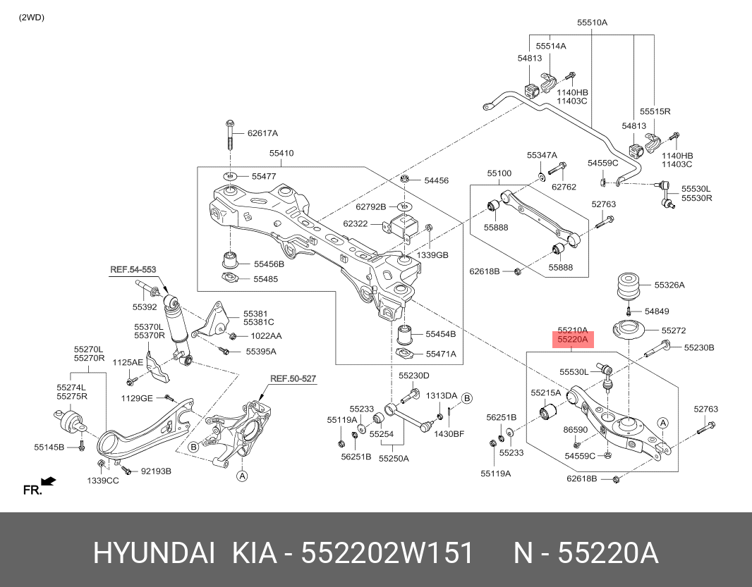 552202W151 HYUNDAI KIA Рычаг подвески HYUNDAI Santa Fe (12-)(4WD) задней нижний правый OE
