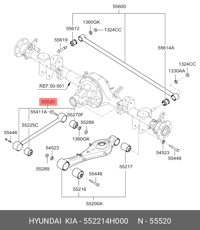 552214H000 HYUNDAI KIA Рычаг подвески HYUNDAI Starex H-1 (07-) задней продольный верхний OE