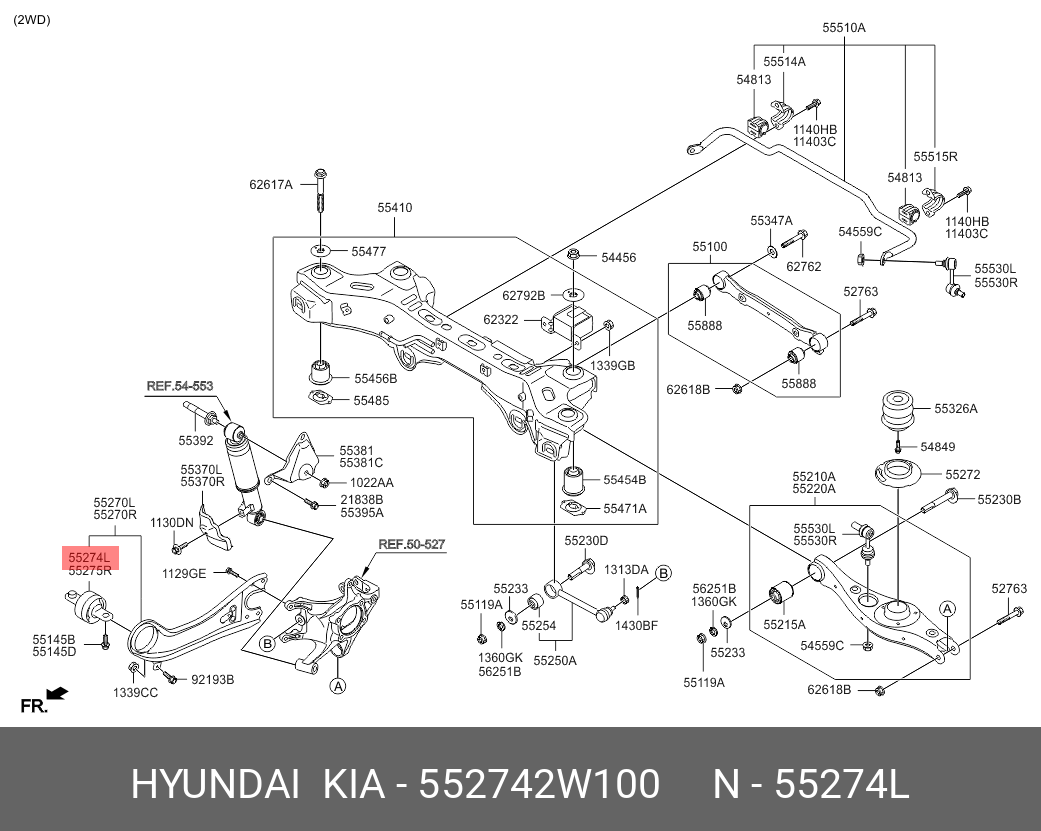 552742W100 HYUNDAI KIA Сайлентблок HYUNDAI Santa Fe (12-) (2WD) рычага заднего продольного левого OE