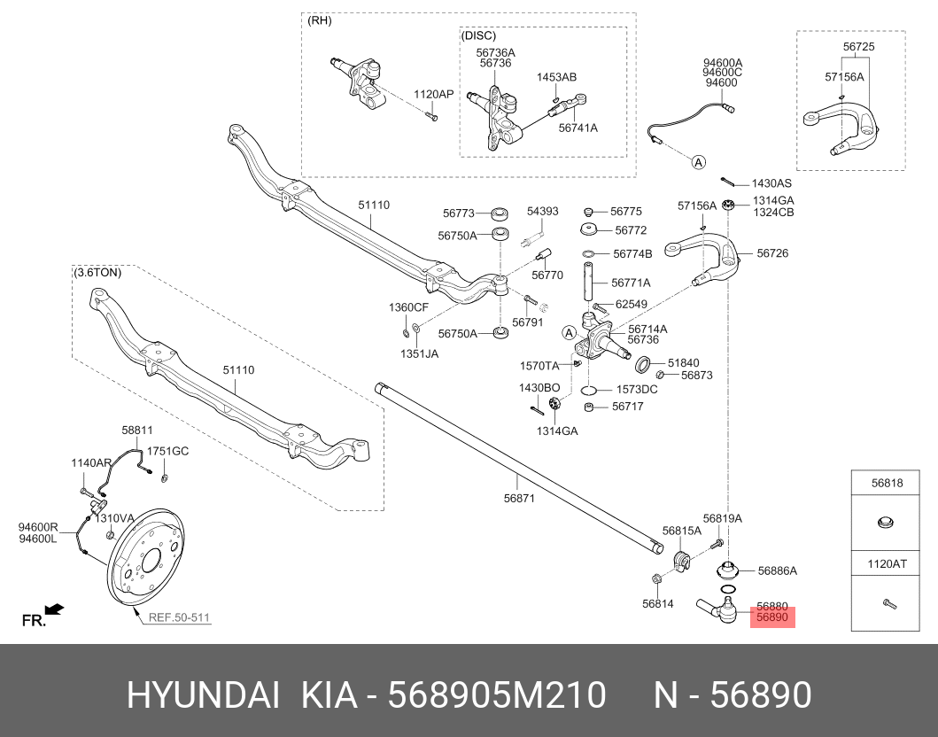 568905M210 HYUNDAI KIA Наконечник рулевой тяги HYUNDAI Mighty EX6,8,9 (15-) правый OE