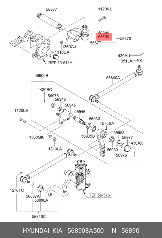 568908A500 HYUNDAI KIA Наконечник поперечной рулевой тяги правый 568908A500 Kia/Hyundai