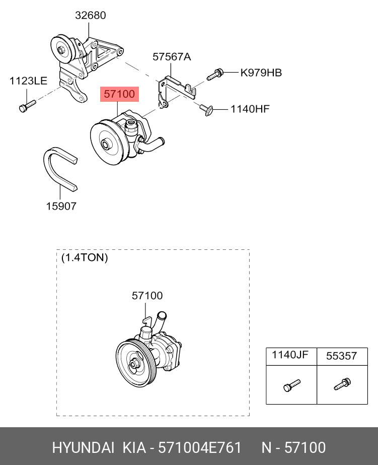 571004E761 HYUNDAI KIA Насос гидроусилителя HYUNDAI HD35 (17-) KIA Bongo 3 (16-) (1.4t) (2.5-A2) OE