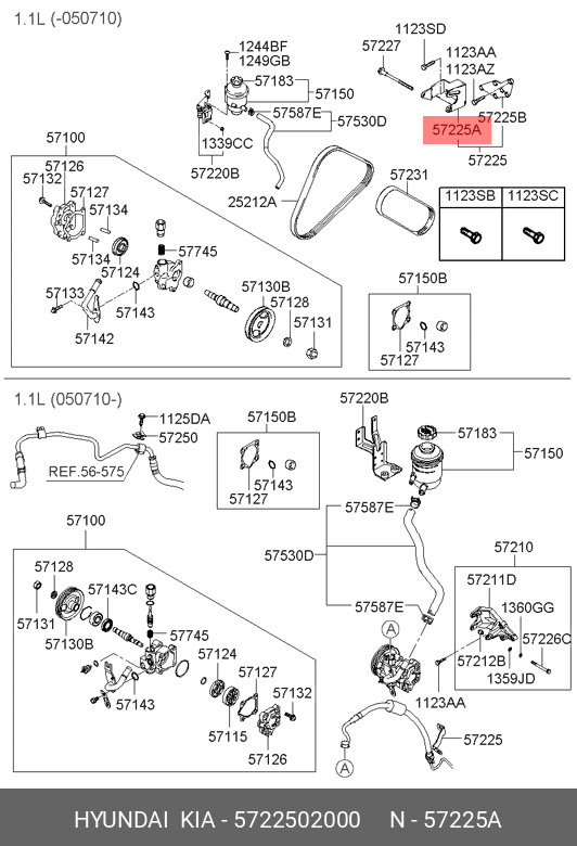5722502000 HYUNDAI KIA Кронштейн масл насоса гур 57225-02000