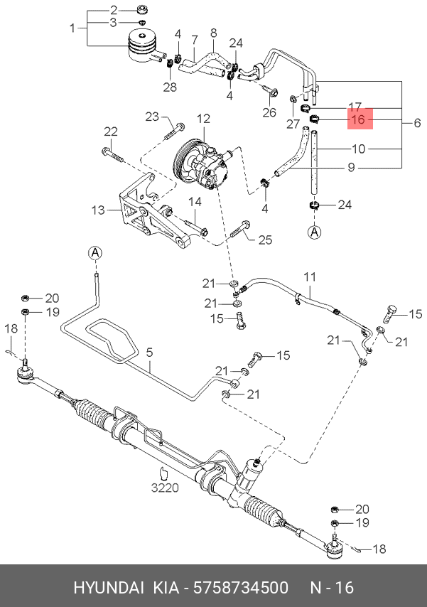 5758734500 HYUNDAI KIA Хомут HYUNDAI HD65,72,78,Santa Fe (00-) шланга ГУРа OE