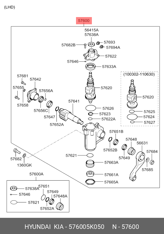 576005K050 HYUNDAI KIA Рейка рулевая HYUNDAI HD65,78 дв.D4DD,D4GA OE