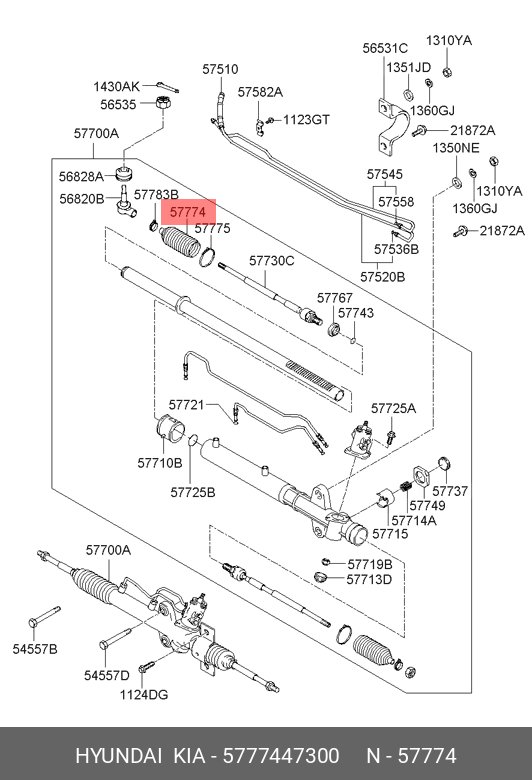5777447300 HYUNDAI KIA Пыльник HYUNDAI Porter 2 рейки рулевой OE