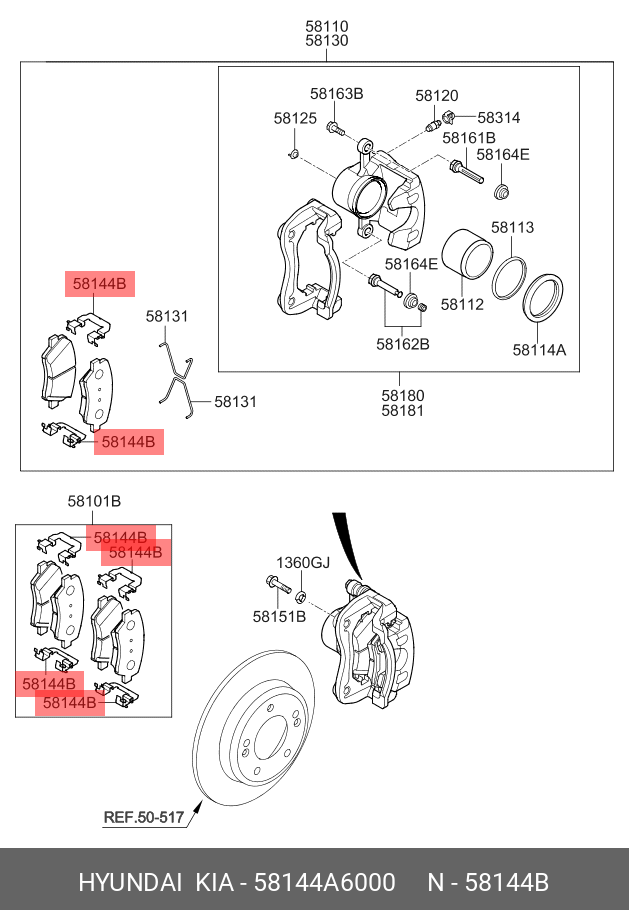 58144A6000 HYUNDAI KIA ПРИЖИМНАЯ ПЛАСТИНА ТОРМОЗНЫХ КОЛОДОК, СТАЛЬНАЯ, ИЗ