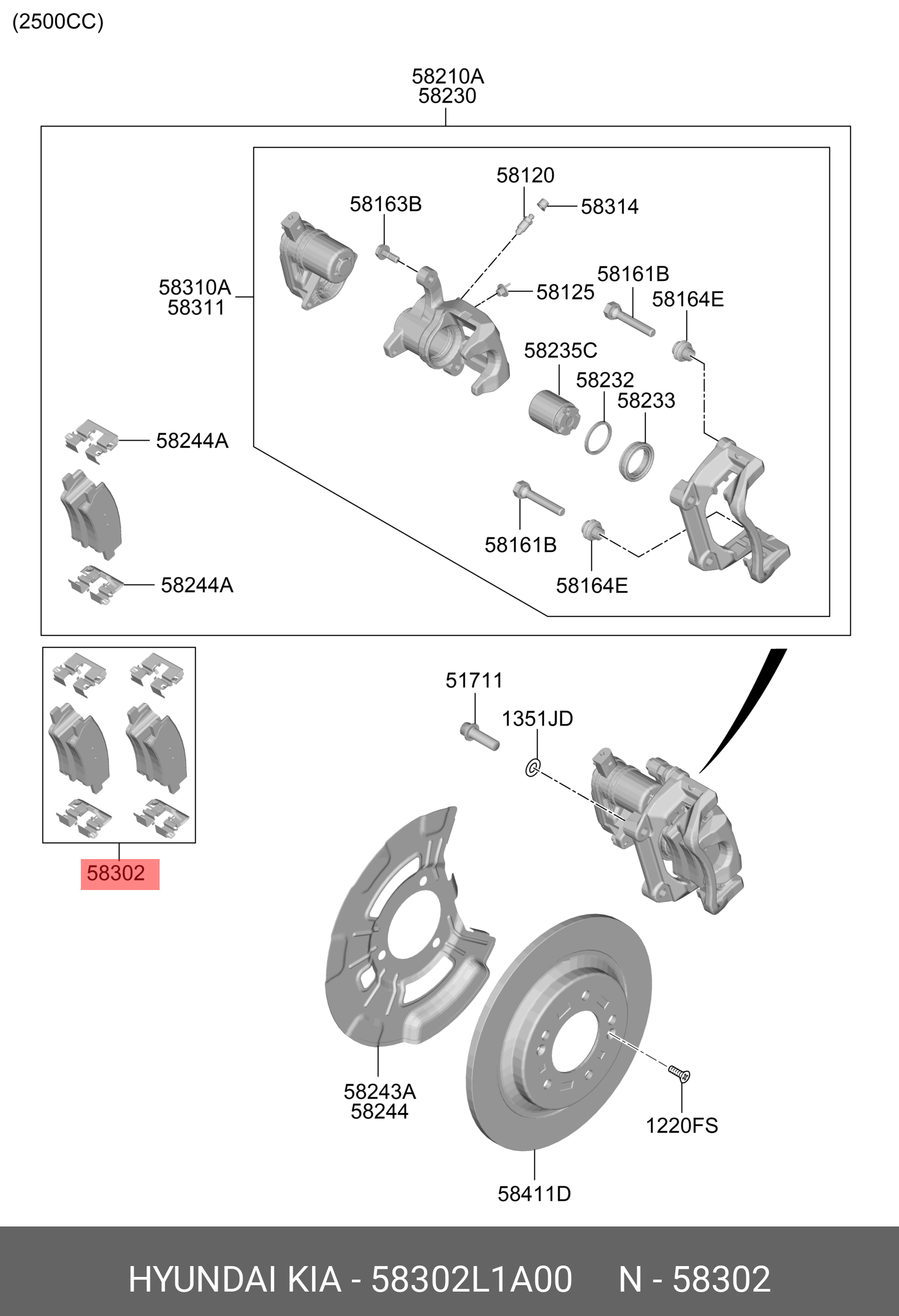 58302-L1A00 HYUNDAI KIA Колодки тормозные HYUNDAI Sonata (19-) KIA K5 (20-) (R18) задние (4шт.) OE