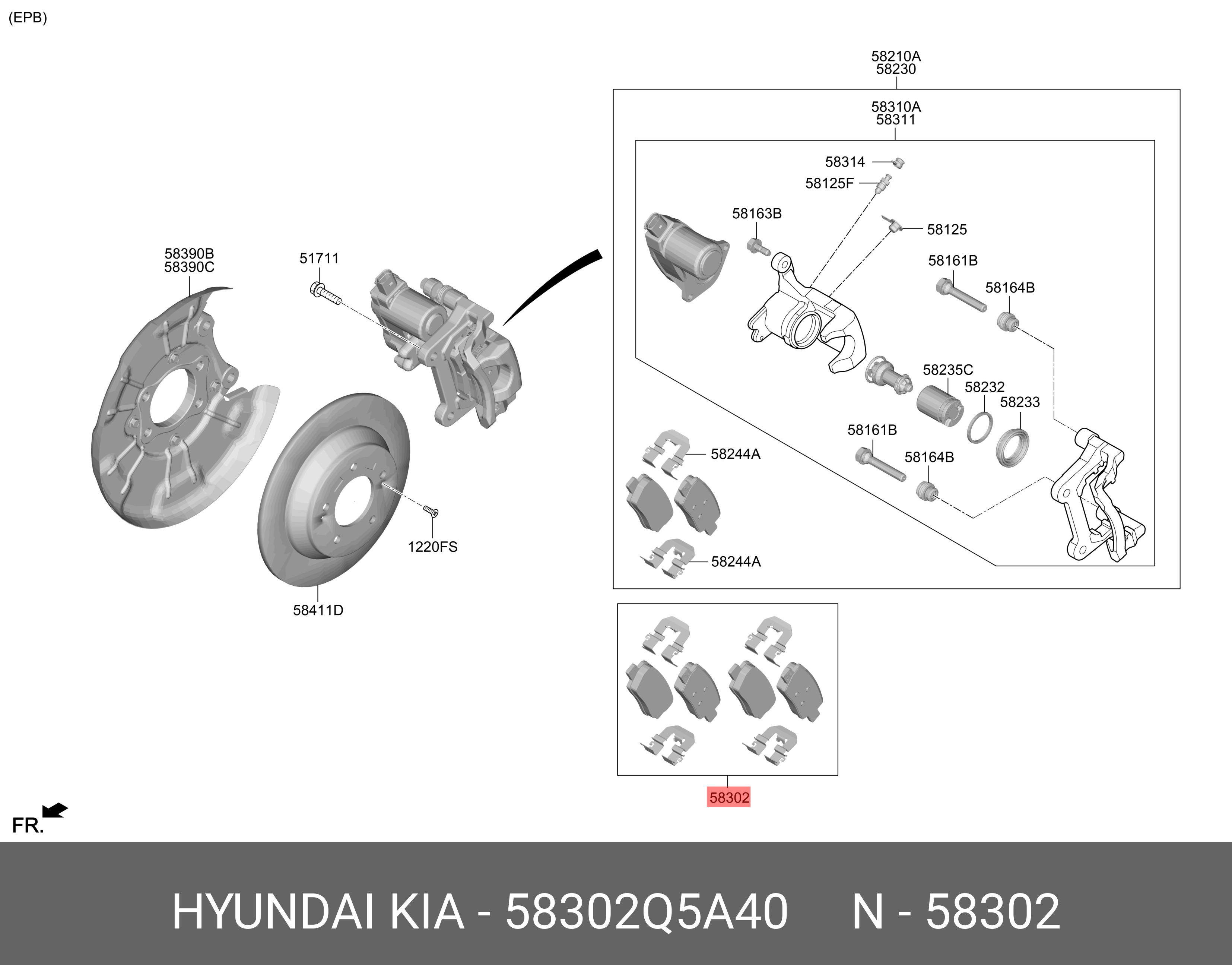58302Q5A40 HYUNDAI KIA Колодки тормозные KIA Seltos (19-) задние (DISC-15 INCH/PARKG BRK CONTROL-EPB) (