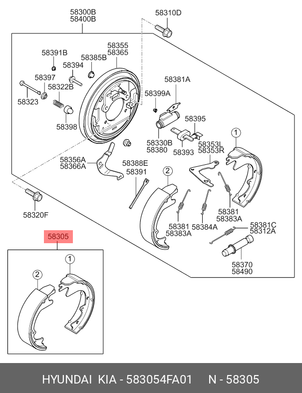 583054FA01 HYUNDAI KIA Колодки тормозные HYUNDAI Porter 2 задние барабанные (4шт.) OE