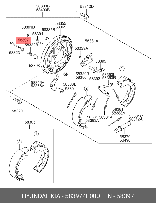 583974E000 HYUNDAI KIA Кольцо стопорное HYUNDAI Porter KIA Bongo 3 (06-) (2WD) колодок тормозных OE