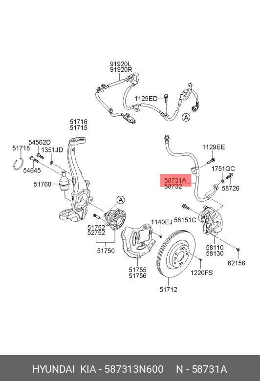 587313N600 HYUNDAI KIA Шланг тормозной HYUNDAI Equus (08-) передний левый OE