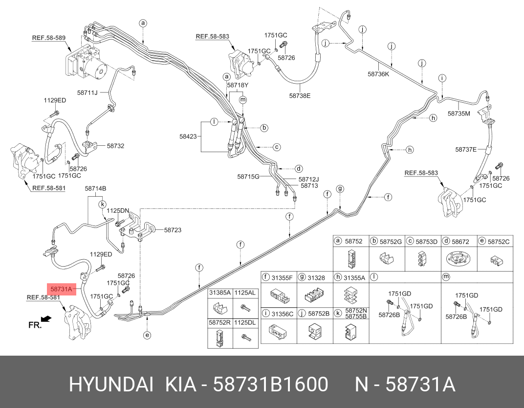 58731B1600 HYUNDAI KIA ШЛАНГ ТОРМОЗНОЙ СИСТЕМЫ