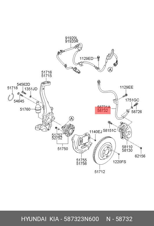 587323N600 HYUNDAI KIA Шланг тормозной HYUNDAI Equus (08-) передний правый OE