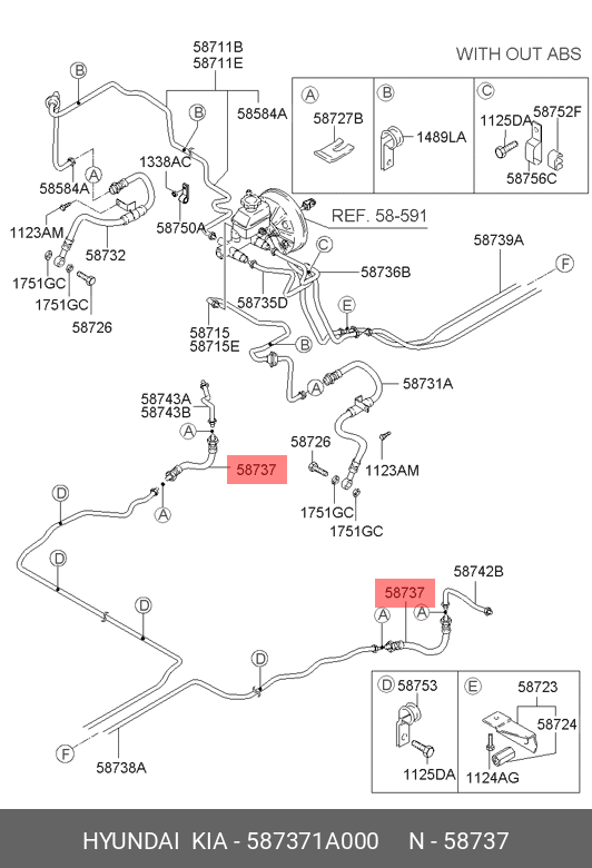 587371A000 HYUNDAI KIA ШЛАНГ ТОРМОЗНОЙ (10702070/201019/0216581/13 - КОРЕЯ, РЕСПУБЛИКА)