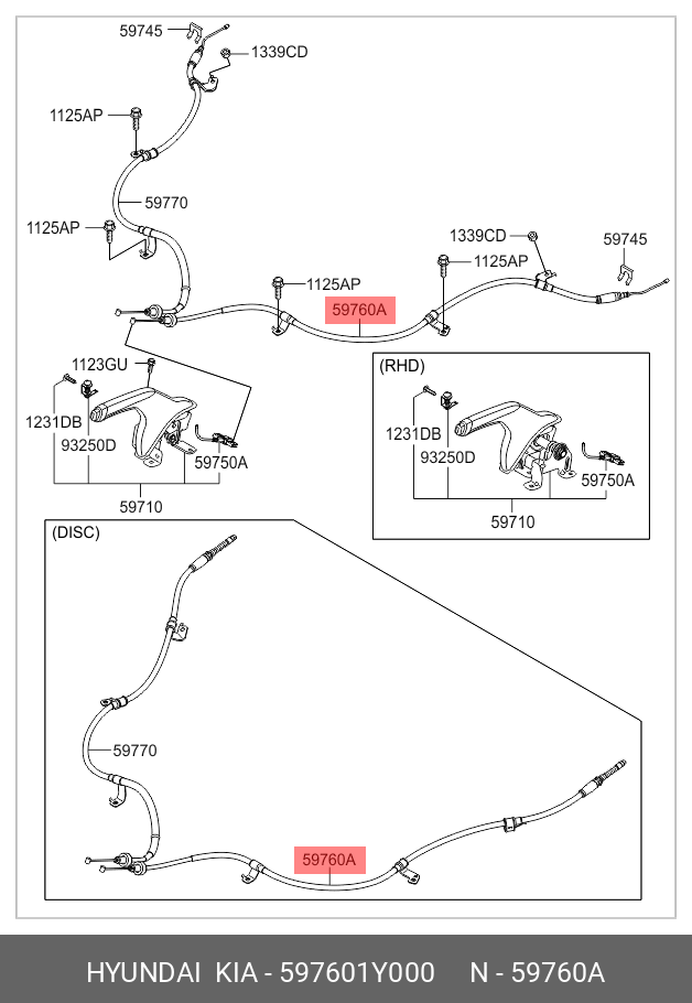 597601Y000 HYUNDAI KIA ТРОСИК СТОЯНОЧНОГО ТОРМОЗА 59760-1Y000