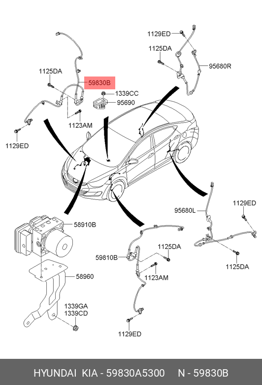59830A5300 HYUNDAI KIA Датчик АБС HYUNDAI Elantra (11-) колеса переднего правого OE