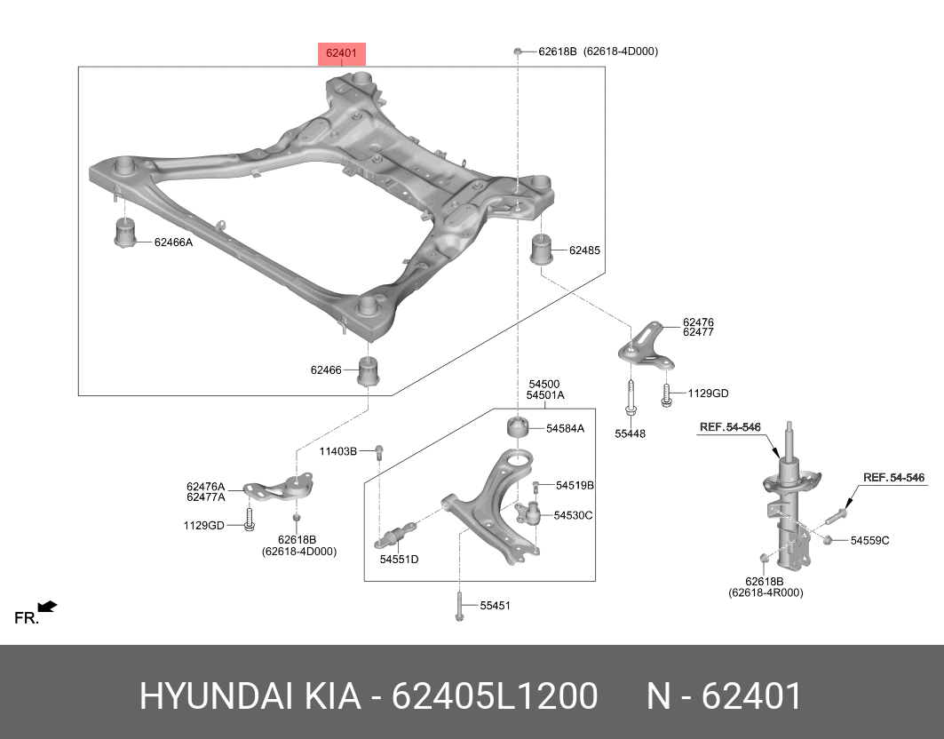 62405L1200 HYUNDAI KIA Подрамник HYUNDAI Sonata (19-) передний OE