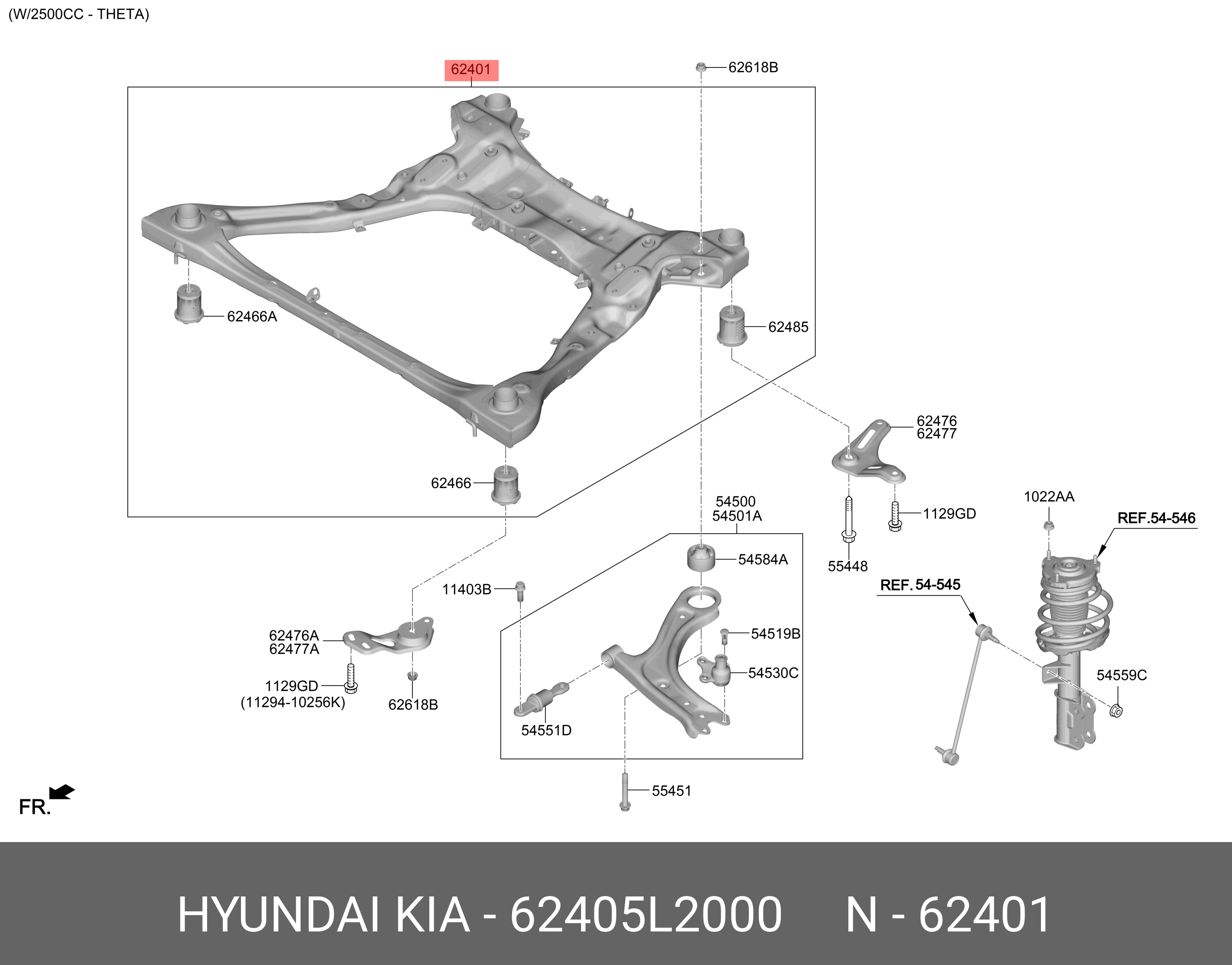 62405L2000 HYUNDAI KIA Подрамник KIA K5 (20-) передний OE
