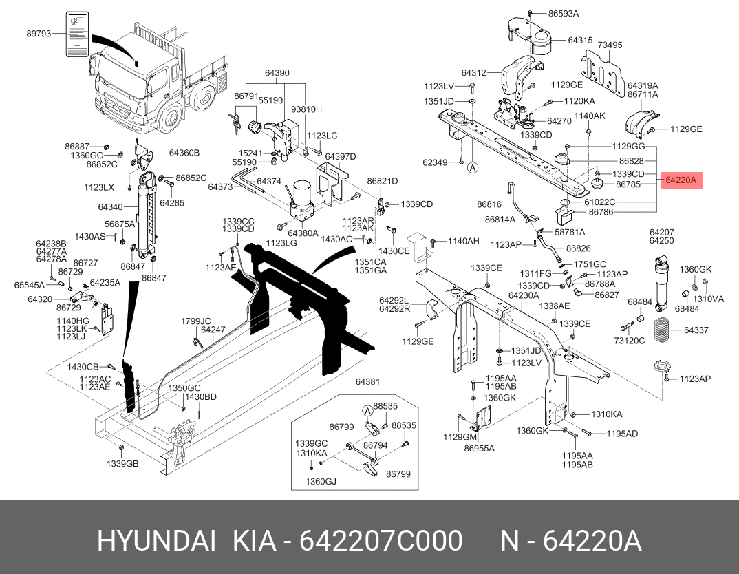 642207C000 HYUNDAI KIA Балка HYUNDAI HD160,170,260,270,500 (08-) крепления кабины задняя OE