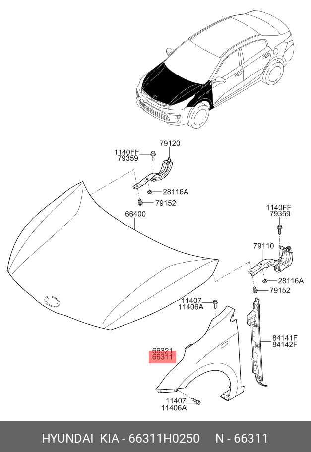 66311H0250 HYUNDAI KIA Крыло переднее левое HYUNDAI/KIA
