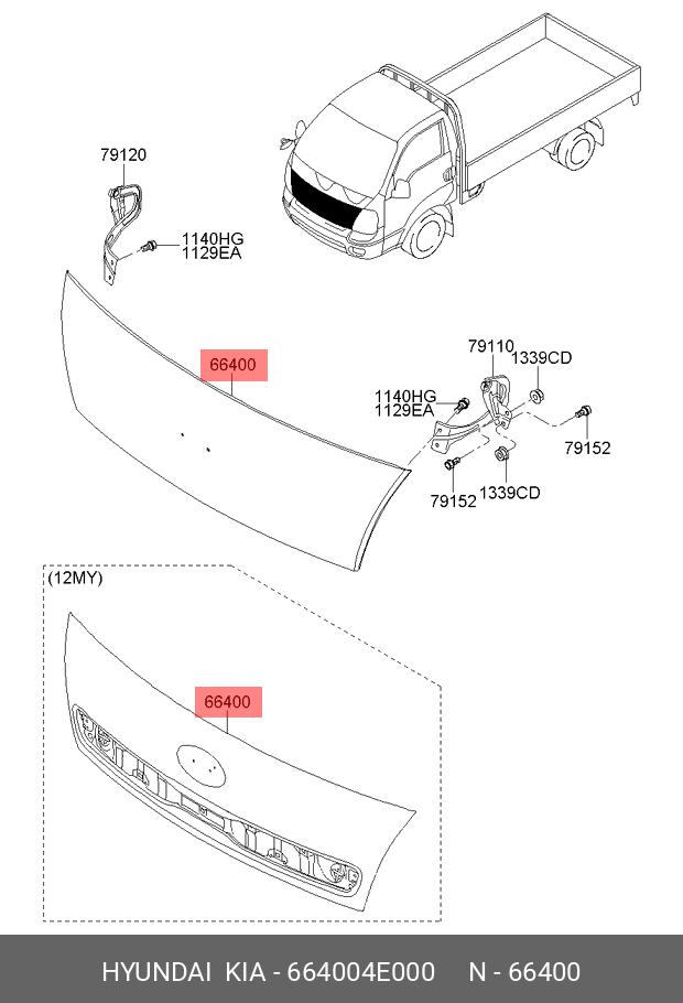 664004E000 HYUNDAI KIA Капот KIA Bongo 3 (06-) OE