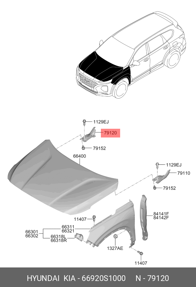 66920S1000 HYUNDAI KIA Петля HYUNDAI Santa Fe (18-) капота правая OE