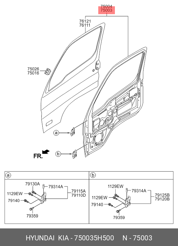 750035H500 HYUNDAI KIA Дверь HYUNDAI HD65,72,78 передняя левая (с отверстием под зеркало) OE