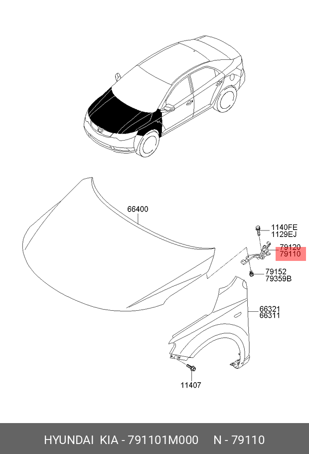 791101M000 HYUNDAI KIA Петля капота