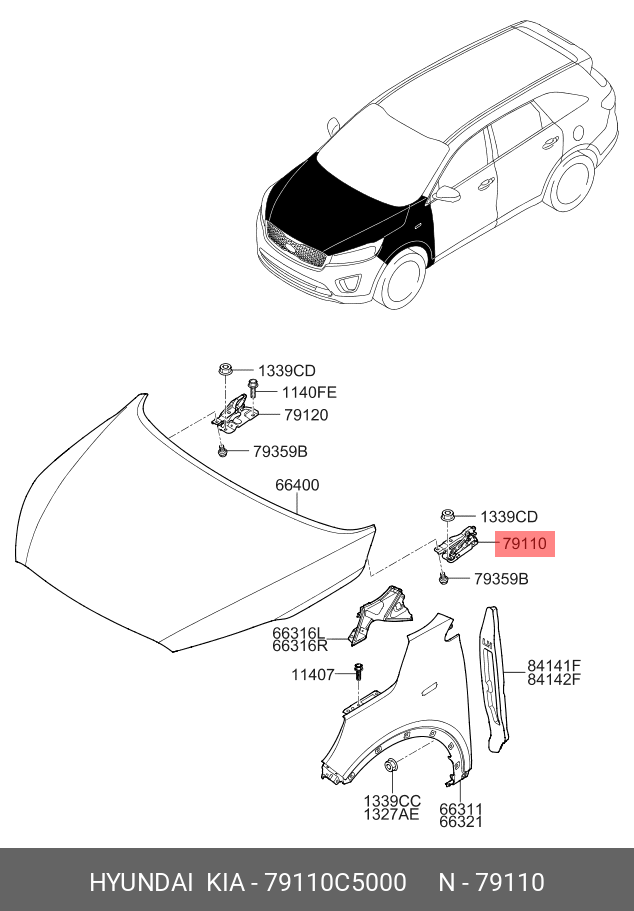 79110C5000 HYUNDAI KIA Петля KIA Sorento (15-) капота левая OE