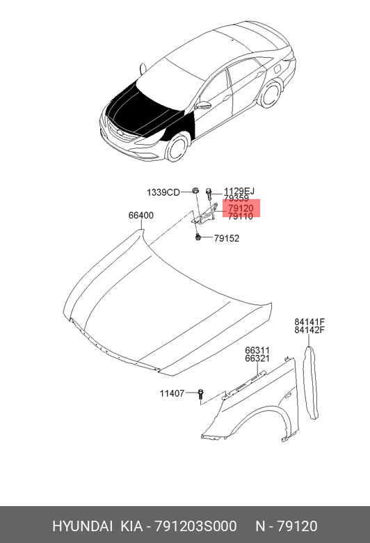 791203S000 HYUNDAI KIA Петля HYUNDAI Sonata (12-) капота правая OE