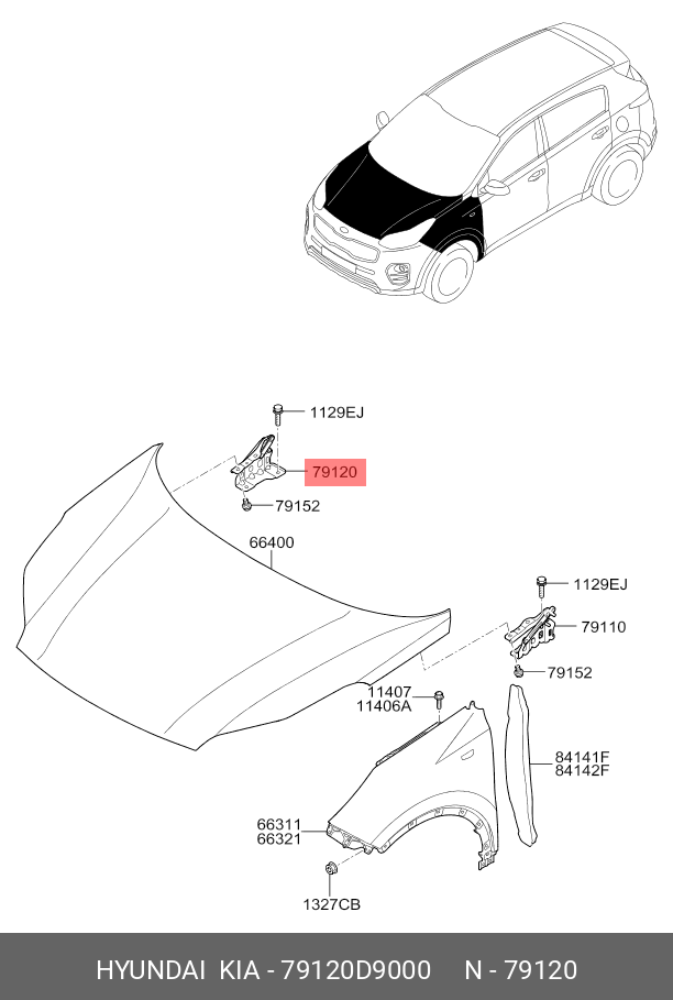 79120D9000 HYUNDAI KIA Петля KIA Sportage (16-) капота правая OE