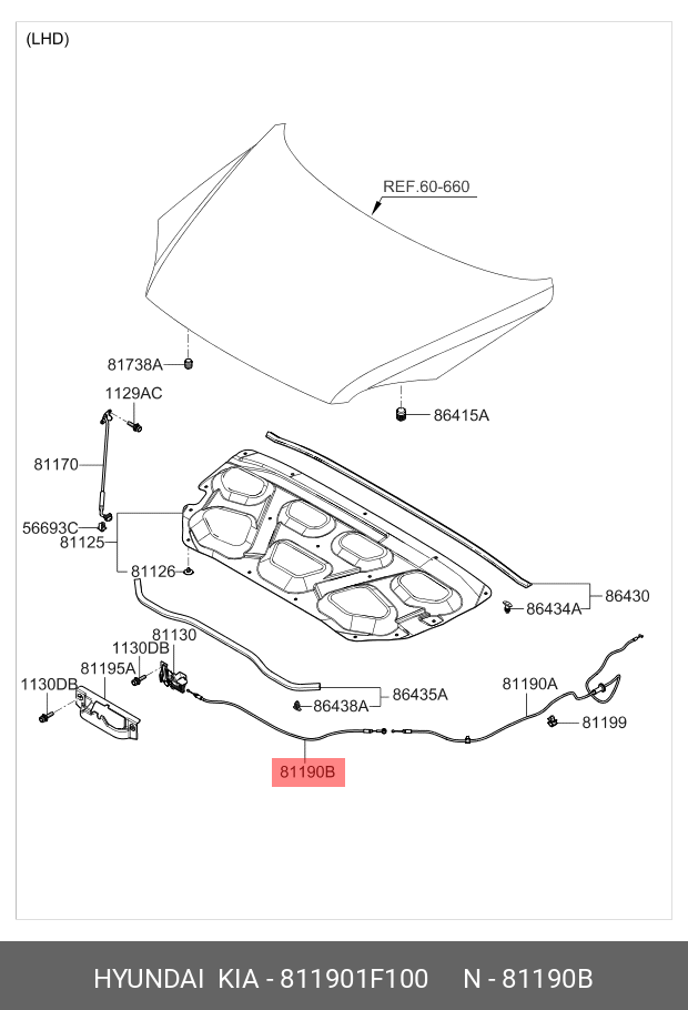 811901F100 HYUNDAI KIA Трос капота KIA Sportage (04-) (от замка) OE