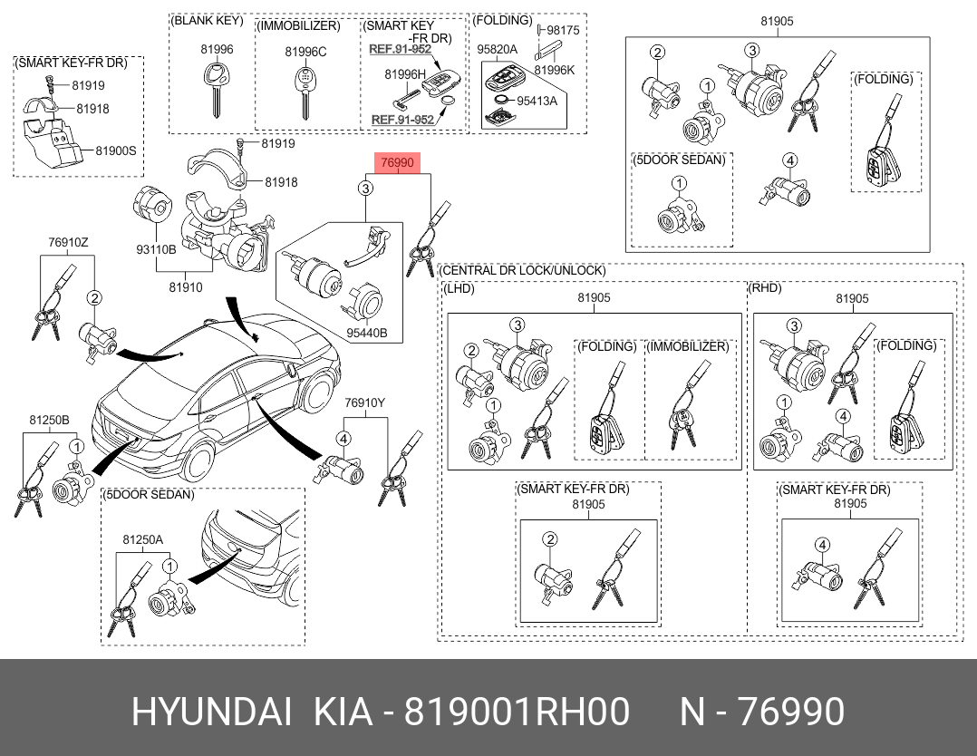 819001RH00 HYUNDAI KIA ЗАМОК ЗАЖИГАНИЯ С 2 КЛЮЧАМИ 81900-1RH00