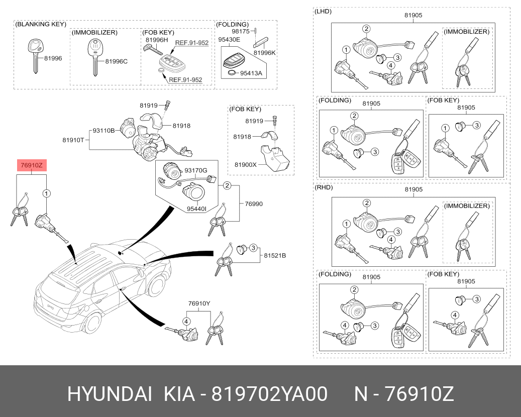 819702YA00 HYUNDAI KIA ЗАМОК ДВЕРИ С 2-МЯ КЛЮЧАМИ 81970-2YA00