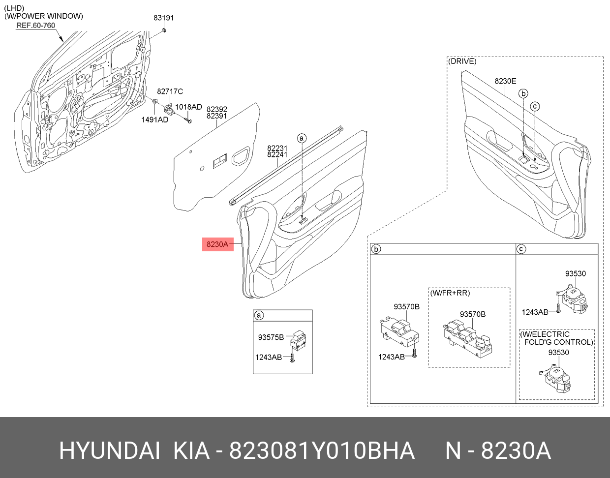 823081Y010BHA HYUNDAI KIA ВНУТРЕННЯЯ ПАНЕЛЬ ДВЕРИ 82308-1Y010BHA