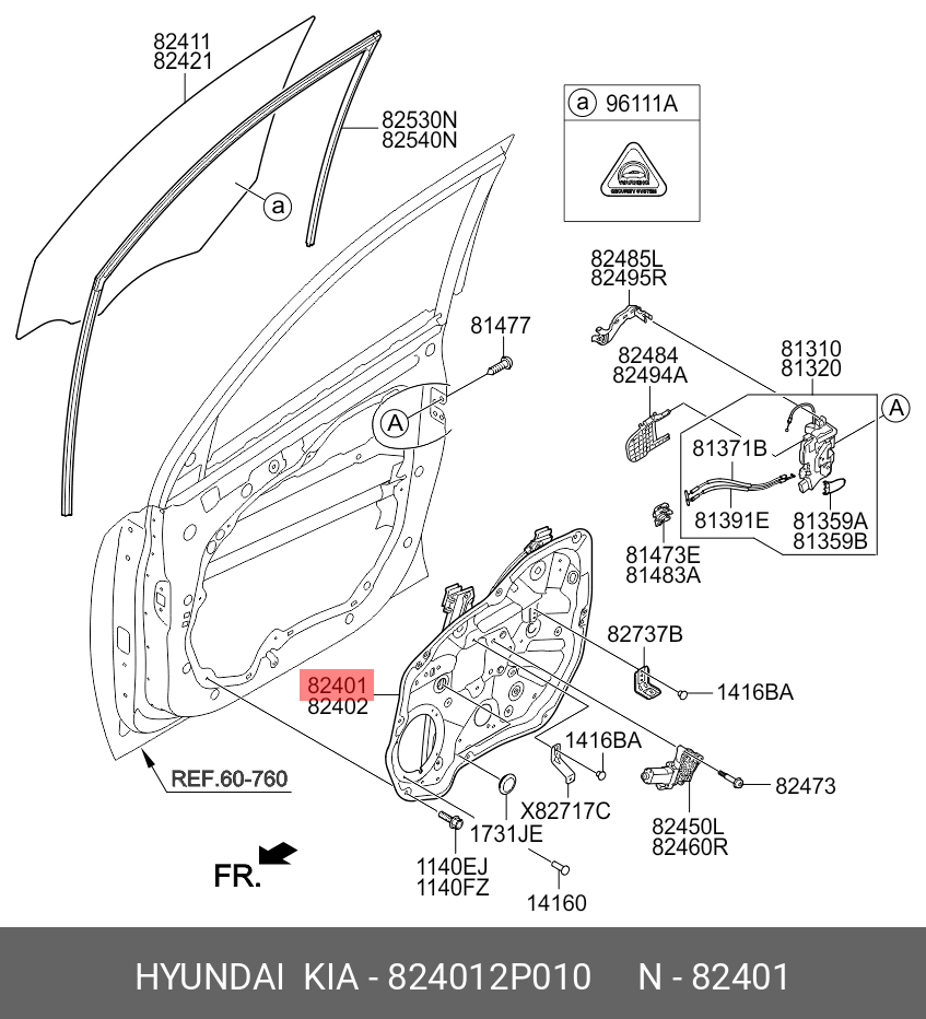 824012P010 HYUNDAI KIA Стеклоподъемник KIA Sorento (09-) двери передней левой (электрический) OE