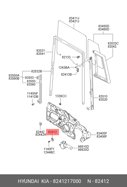 8241217000 HYUNDAI KIA Фиксатор HYUNDAI Accent (06-) KIA Bongo 3 (06-),Rio (05-) стекла двери OE