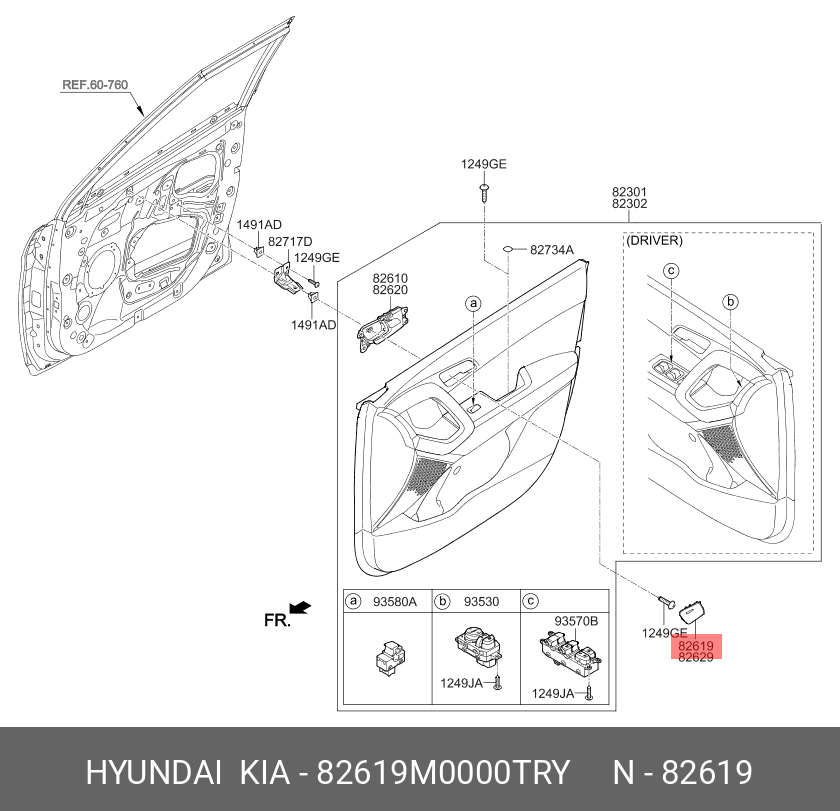 82619M0000TRY HYUNDAI KIA ЗАГЛУШКА РУЧКИ САЛОНА HYUNDAI/KIA